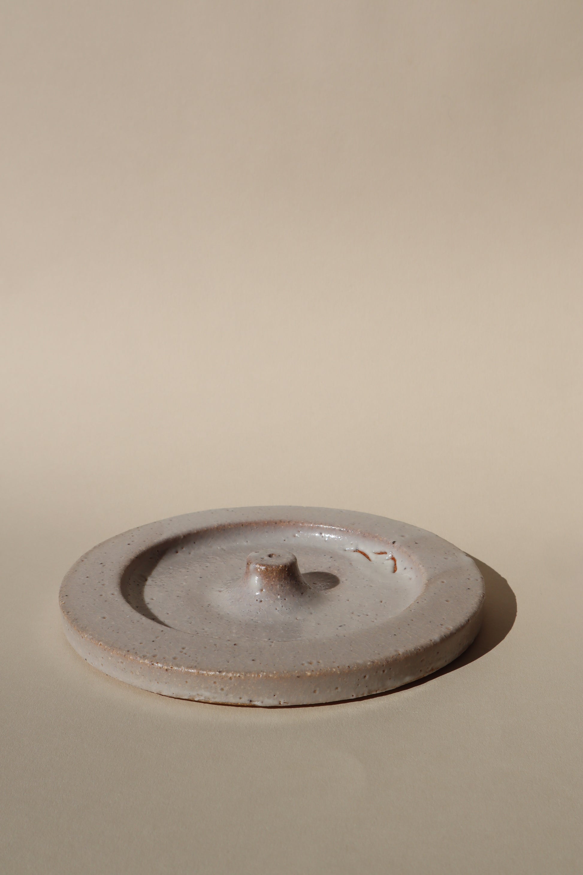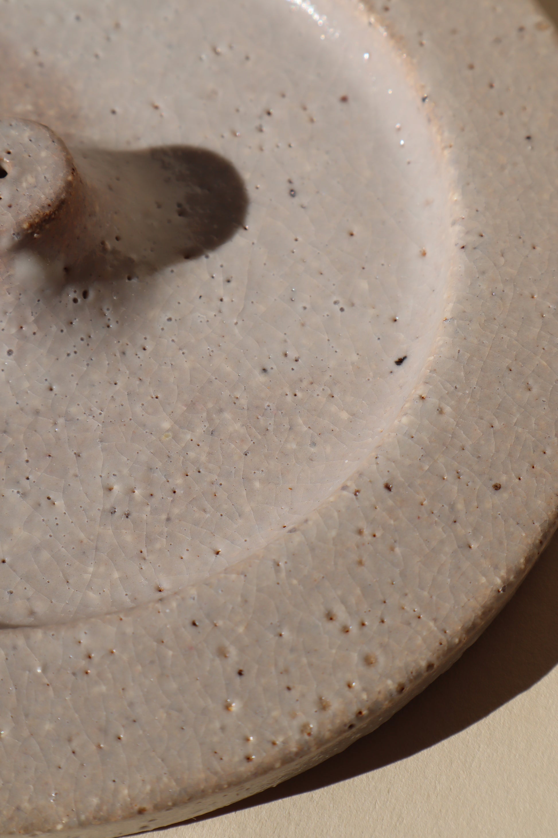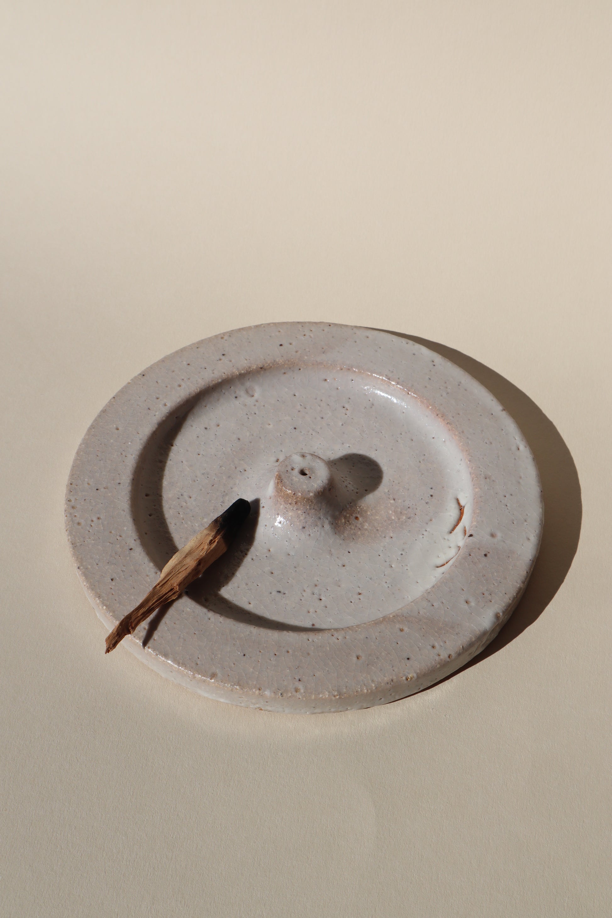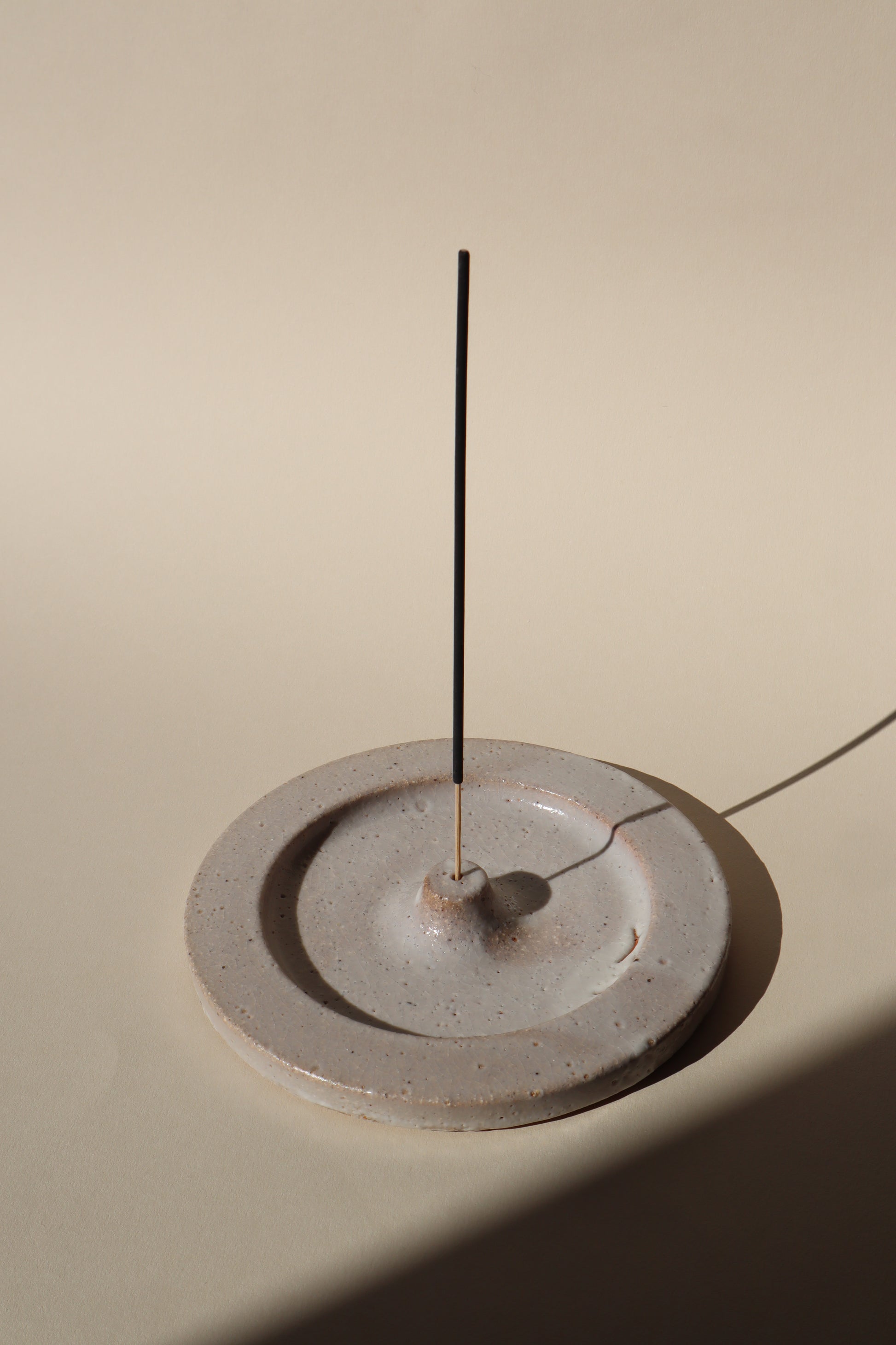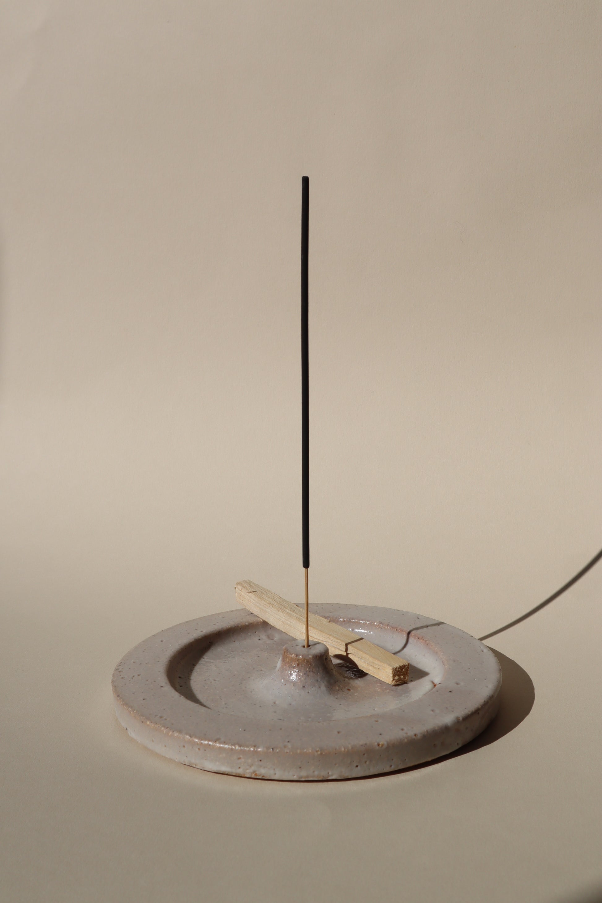 Made to elevate your space through your senses. Solid hand thrown stoneware incense holder with a translucent crackle glaze.