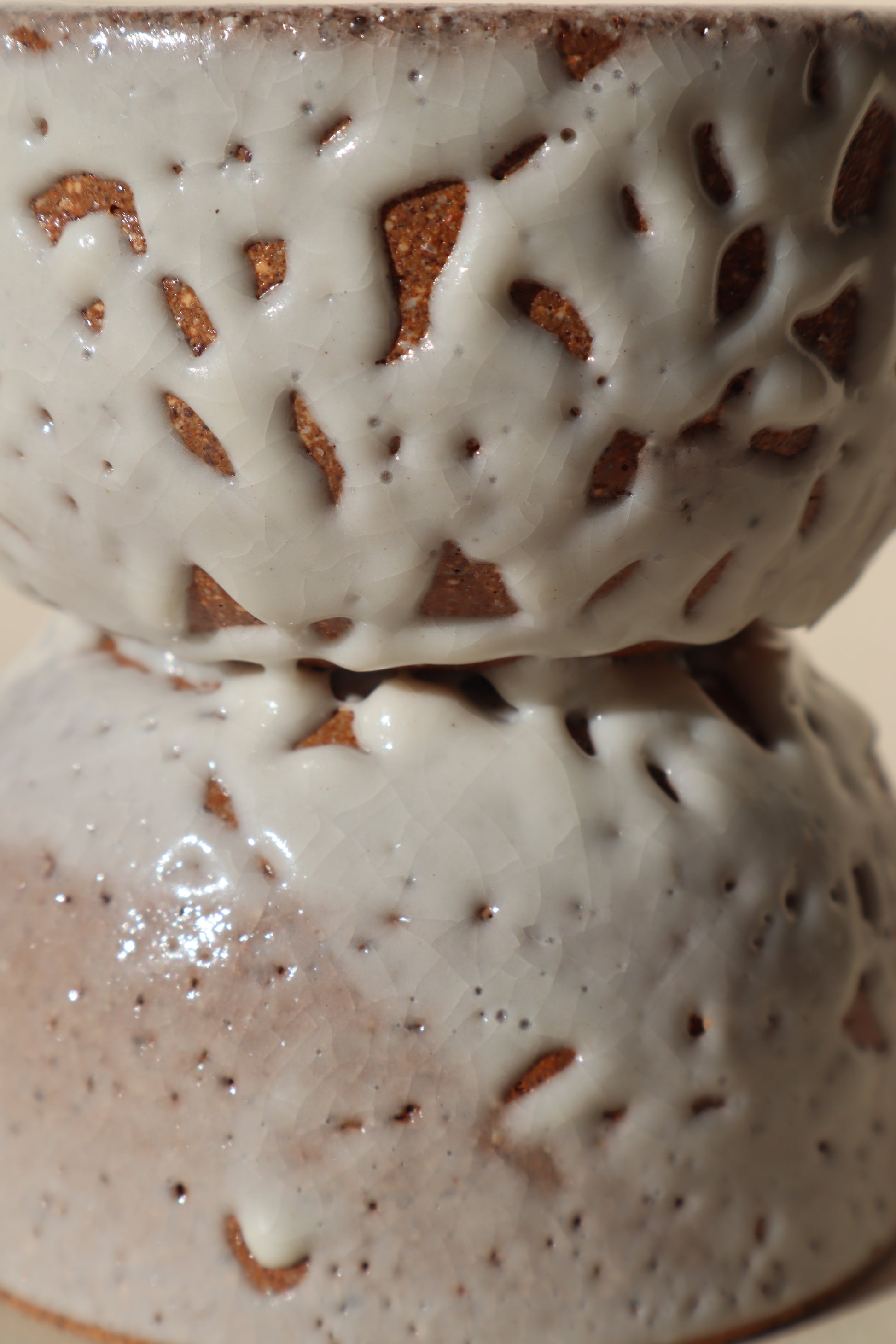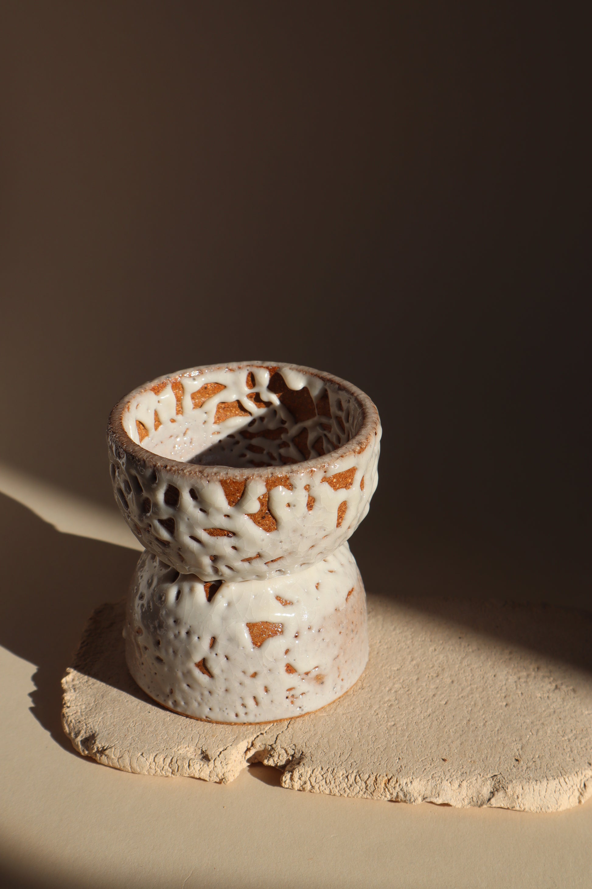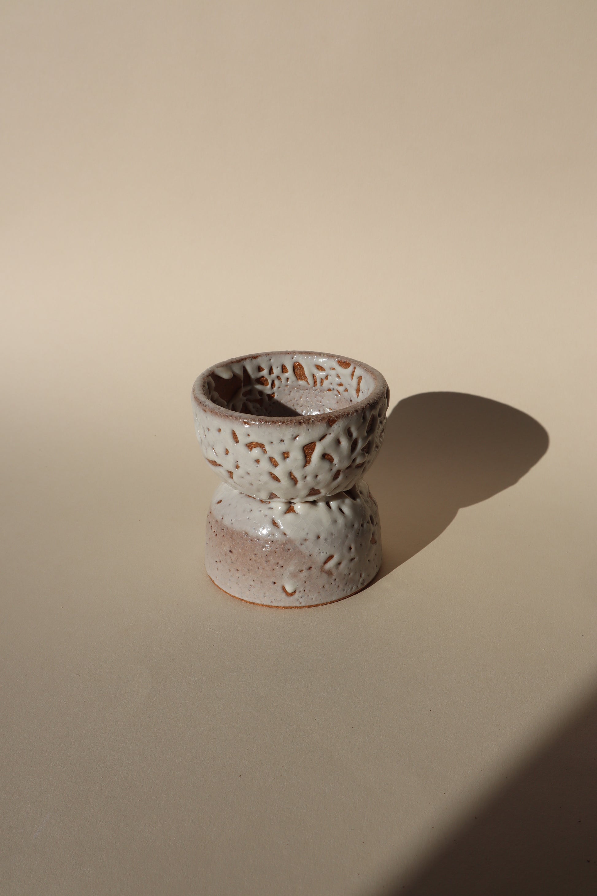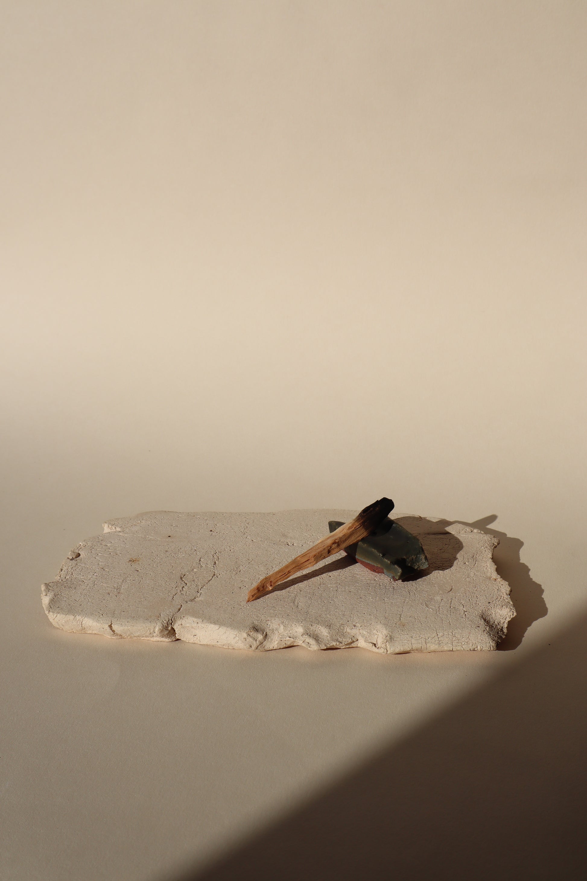 - Stoneware incense holder with crawling crackle glaze. Can be paired with a tea light candle or tapered candle (with support of small stones or sand).
