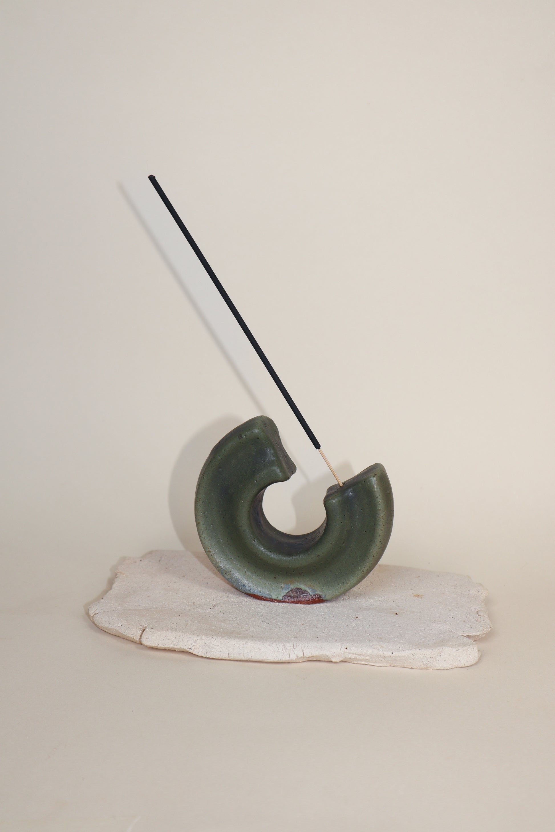 - Sold clay incense holder with green glaze