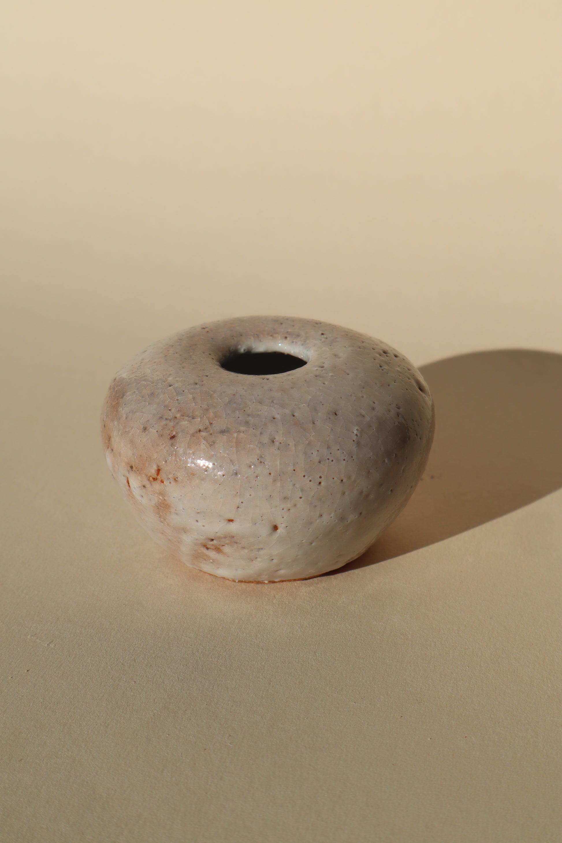 - Stem vase with creamy translucent crackle glaze, white inside.